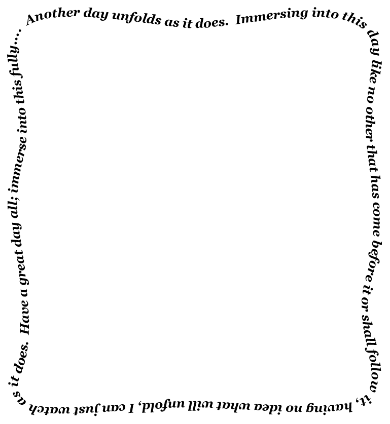What a fascinating thing it is, the utter simplicity that underlies all the complexity, drama, and surface details we surround our lives with. To feel oneself as that simplicity rather than caught in the extremities of thought is to know peace, not theoretically but in a visceral way, filling one’s days with what is actually needed rather than what is sought, be that seeking for peace or heaven or a fat pocketbook. You see, that is hell, to seek to be something different than what we actually are. The conflict will always manifest in some fashion. Heaven is the absence of this search that is based on comparison, a “value” taught to us by the systems we use, by the churches we go to, by the media who tell us what is of worth and what is to be ignored.