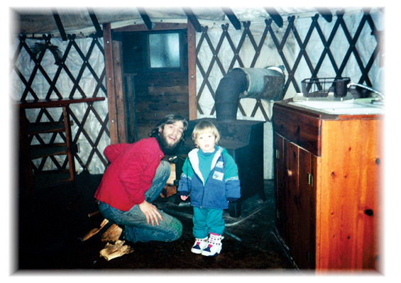 Becky and I were kids ourselves, really, when we moved into the yurt in 1992. With Alex 2 years old, and Aaron just born, we had our hands full. The week we moved into the yurt was the coldest week of that winter, which froze the gravity-fed water lines, leaving us without running water and only a lantern and candles for light. Jump right in, indeed. I pulled the black plastic piping apart from its feed 200 feet up the hill and laid it in the stream to melt in thirty foot sections, sending long tubular ice cores down into the basin pool. When all of the lines were free of ice, I put them back together so we could have some water to prepare dinner. It took many hours to complete this simple task, and yet that is how things are in such an environment. One works with what one has and keeps the basic necessities moving as well as possible. Great lessons in patience and perseverance I learned in this time off the grid. Plans became impractical; we just woke up and went through our days, one at a time, and it was always interesting. One day, Alex realized how to release the emergency brake on the van... that was very interesting. Let’s just say sandals are not the best footwear when holding onto the front bumper of a Volkswagen van rolling downhill. Alex seemed to enjoy the ride more than I.