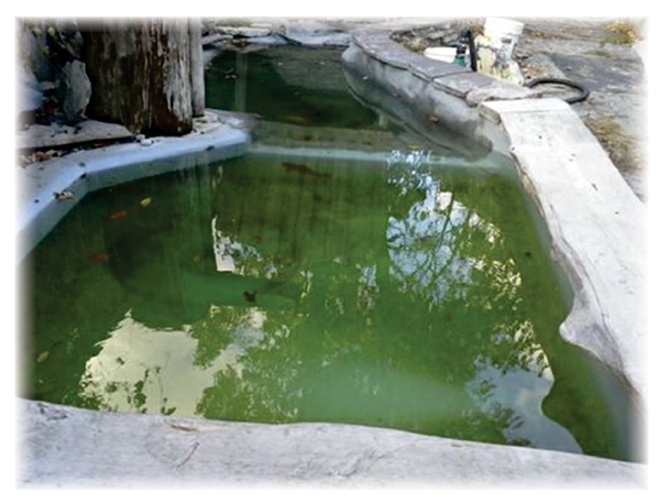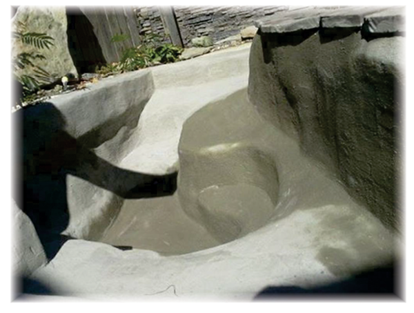 A good week to finish what was started last fall. Little bit of plaster on top and then paint and pond will be operational again.